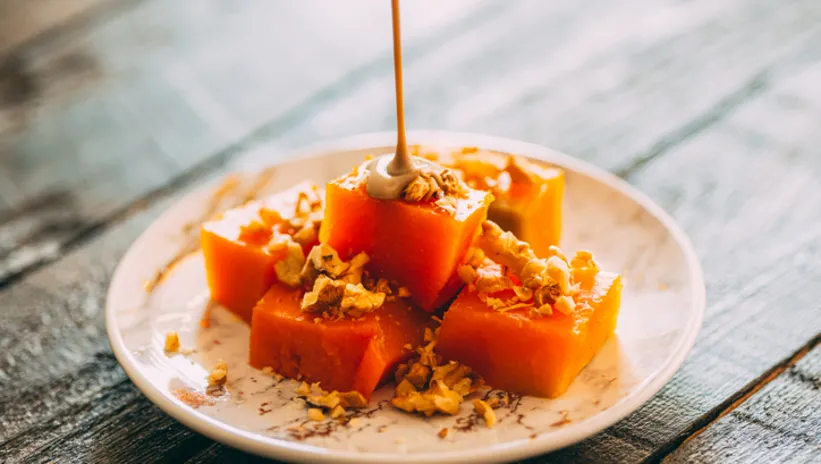 - Bal kabağının üzerine istediğiniz miktarda kaymak, tahin ve ceviz dökerek servise hazır hale getirin.