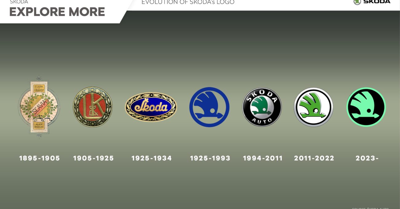 Skoda, yeni marka kimliğini elektrikli VISION 7S konsepti ile birlikte tanıttı. Bu değişime paralel olarak, ekolojiye verdiği ağırlığı logosuna da yansıttı. Yeni logoda renkler ekoloji, sürdürülebilirlik ve elektro-mobiliteyi yansıtan yeşil tonlarında. 2011 yılından bu yana kullanılan üç boyutlu tasarımın aksine iki boyutlu tasarım ise dijital dünyaya geçişi simgeliyor.